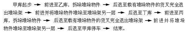 (作業(yè)要點(diǎn):加油提升,倒車貨叉要后傾要提升,丁庫放叉)