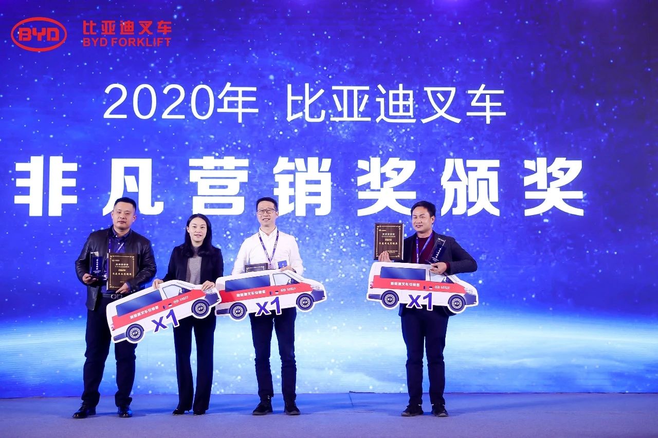 大會同時(shí)頒發(fā)了非凡營銷獎(jiǎng)、卓越經(jīng)銷商獎(jiǎng)項(xiàng),也對在2020年銷售業(yè)績表現(xiàn)突出的經(jīng)銷商進(jìn)行了獎(jiǎng)勵(lì),以感謝他們對比亞迪叉車發(fā)展做出的杰出貢獻(xiàn)。