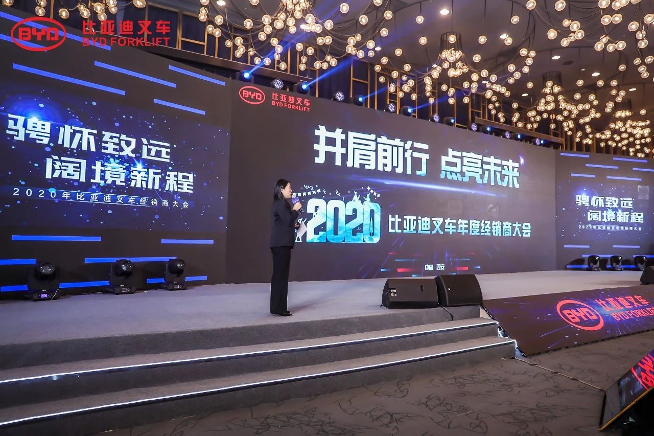 1月6日,以“騁懷致遠(yuǎn),闊境新程”為主題的2020年比亞迪叉車經(jīng)銷商大會在陜西西安隆重召開。比亞迪叉車總經(jīng)理畢國忠先生與事業(yè)部各高層領(lǐng)導(dǎo),以及全國各地的杰出經(jīng)銷商代表、行業(yè)協(xié)會、媒體朋友們歡聚一堂,共同分享喜悅、見證榮耀,展望新能源叉車的未來發(fā)展宏圖。