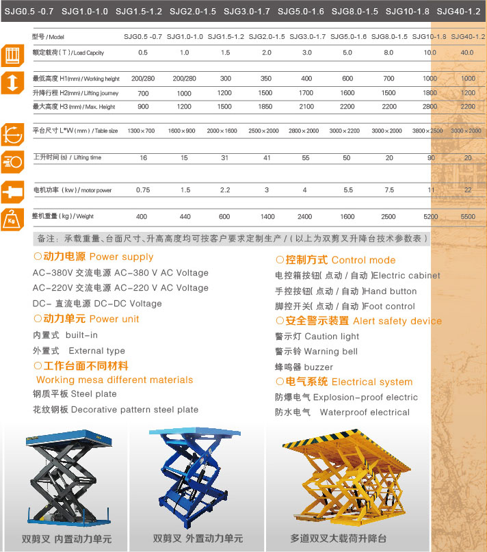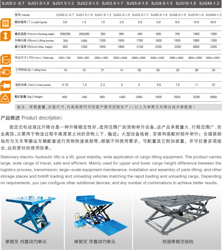 固定式電動液壓升降臺是一種升降穩(wěn)定性好,適用范圍廣的貨物舉升設備。該產(chǎn)品承載量大、行程范圍廣、安全高效。主要用于物流過程中高度差之間的貨物上下、輸送;大型設備檢修、安裝和裝配時部件舉升;倉儲裝卸場所與叉車等搬運車輛配套進行貨物快速裝卸等。根據(jù)不同使用要求,可配置其它附加裝置,并可任意多項組合,達到更好的使用效果。